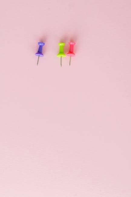 T-pins‚ distinguished by their T-shaped heads‚ provide a more secure hold‚ particularly useful when working with thicker materials or needing to hold multiple layers firmly in place. They are ideal for projects like quilting or attaching fabric to boards. Understanding these distinctions allows crafters to select the optimal pin for enhanced project outcomes.